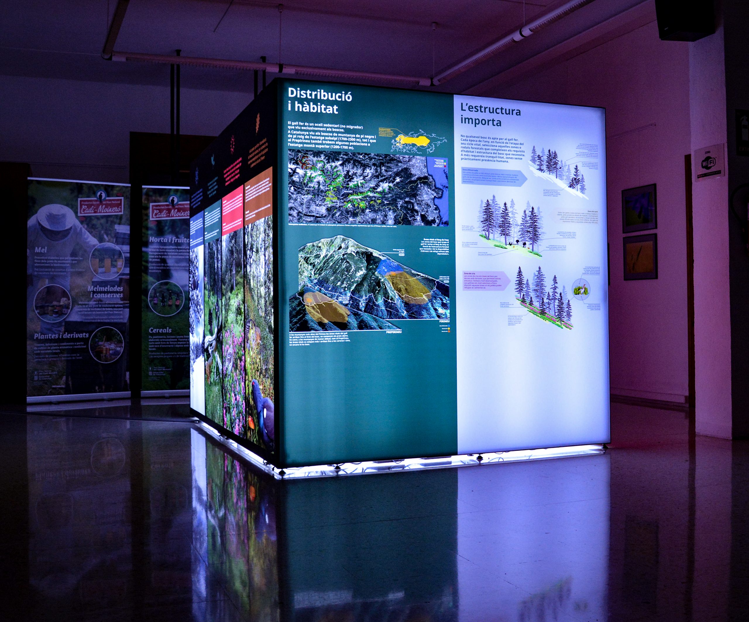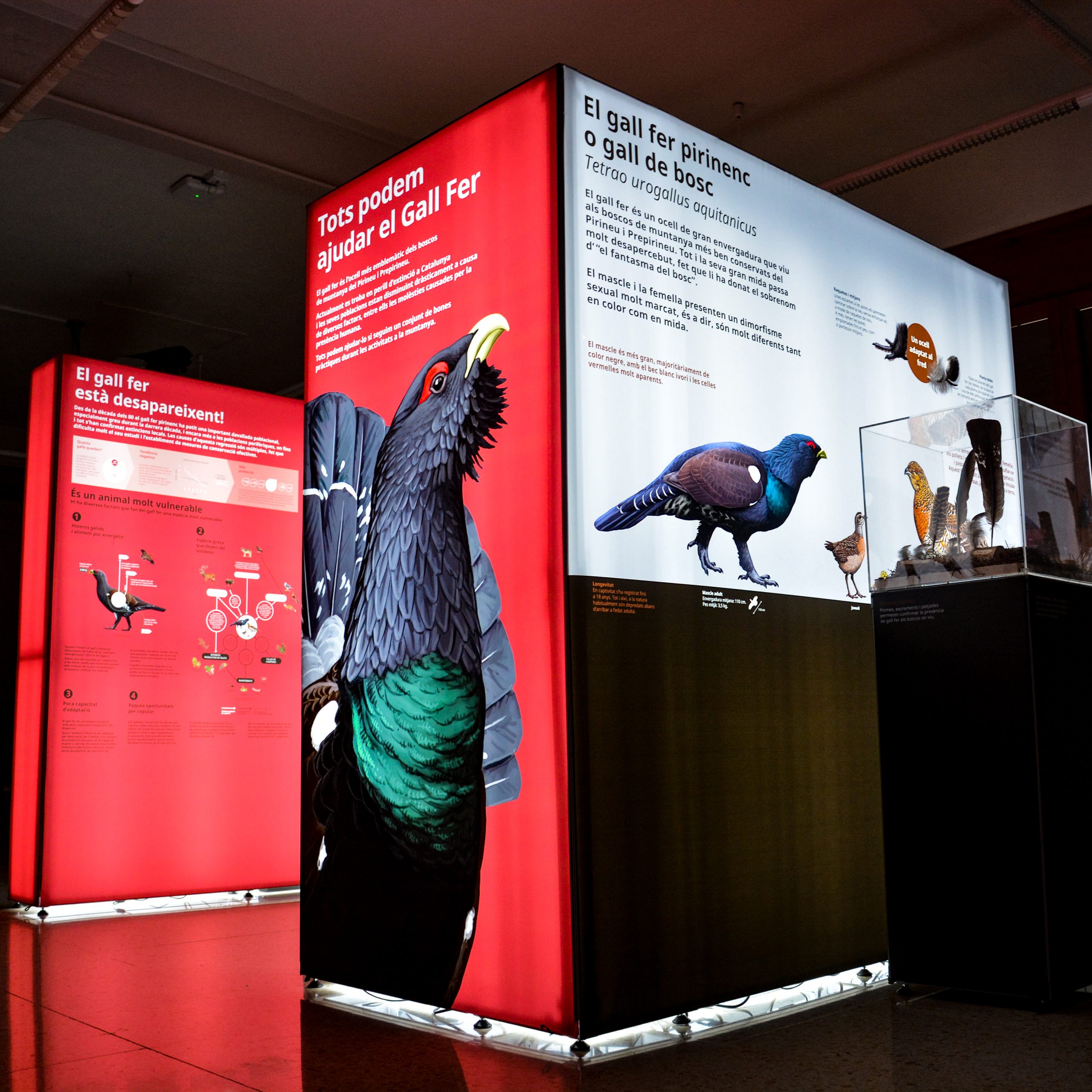 Gràcies al conjunt dels 8 panells retroil·luminats que la formen (d’entre 2 i 3 metres d’amplada i 2 metres d’altura), ens endinsarem al món del gall fer d’una manera molt visual.